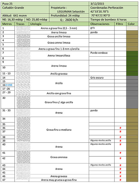Hemos realizado 32 perforaciones para el Estado Nacional por Plan Agua del Ministerio de Agricultura, Ganadería, pesca y alimentación de la Nación. 59 perforaciones contratados por empresas constructoras que resultaron adjudicatarias de obras para beneficiarios de mejoramiento Hábitat rural, y otros planes del Instituto Provincial de la Vivienda. Municipios de Chubut. 12 perforaciones Consejo agrario de Santa Cruz. Pozos monitoreo de contaminación de freáticas en zona de El Bolsón. Sondeos para estudios de capacidad portante de suelos parque Eólico Rawson y sondeos en mineras de Santa Cruz. 45 perforaciones en la meseta de Chubut con financiamiento de través de CORFO (2012 y 2013).